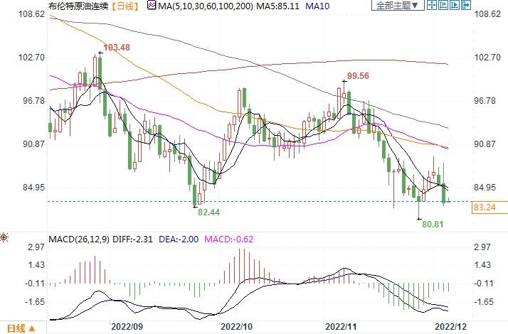 北京时间12月6日16:50,布伦特原油连续报83.07美元/桶